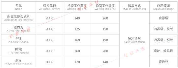 除塵清灰工作過程為:以一個袋為例,含塵氣體由進口處直接進入氣箱的袋室;由于有負壓風機的引力驅動作用,含塵氣體由外及里,自下而上,克服阻力,穿越濾袋到達上部箱體;粉塵就會被阻擋在濾器組件之外,小的顆粒被吸附在濾芯的表面,大的顆粒直接掉到下面的灰斗中;經過過濾后的含有微塵的氣體在脈沖提升閥處匯集,之后從出風口排出,此時便是干凈的氣體。過濾狀態就是對含塵氣體進行除塵。當過濾工作達到一定時間(或阻力達到預先設定值),清灰過程開始。其工作過程為:控制器發出信號,使脈沖提升閥關閉,阻斷排氣;壓縮空氣脈沖閥開啟,以大于0.5MPa的壓縮空氣經脈沖閥噴入凈氣室;并迅速膨脹入濾袋內,并產生振動作用,清除濾袋外側表面上的粉塵,粉塵掉落到灰斗。這個動作完成后(大約6~15s),壓縮空氣脈沖閥關閉,提升閥重新打開,該箱室的濾袋重新回到過濾狀態。
